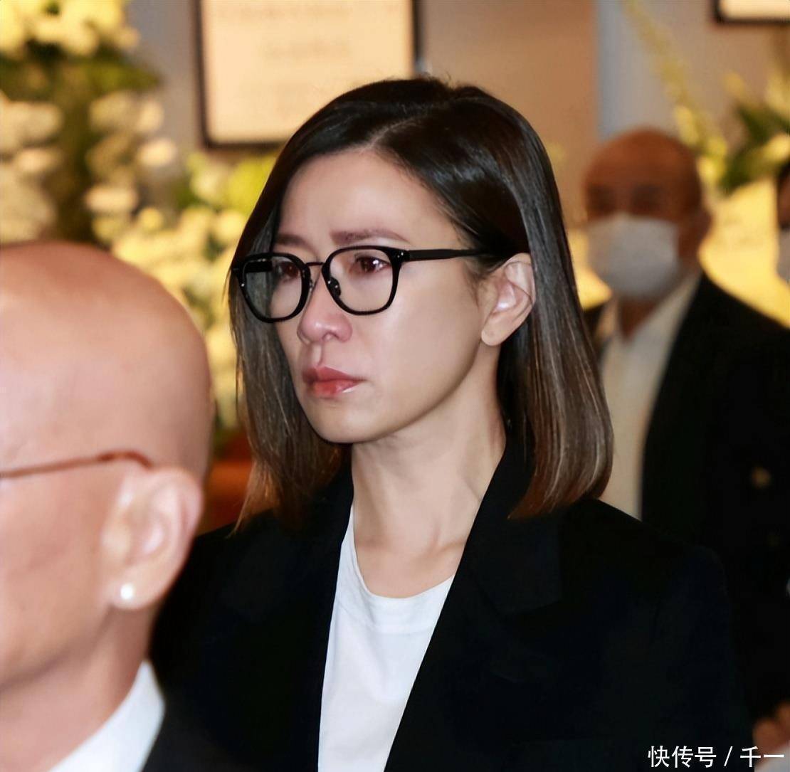 被许绍雄视如己出的干女儿佘诗曼,更是将这份悲痛写在了脸上。她的花牌被特意安放在家属区,挽联上没有客套的敬辞,只有两个字——“老豆”(粤语:老爸)。从《使徒行者》里走出来的父女情,早已在戏外生根发芽。她来了两次,第二次穿着一身黑西装,墨镜也遮不住哭肿的双眼,在遗照前站了许久,嘴唇颤抖,却一言不发。所有的情感,都凝结在了那无声的伫立里。
