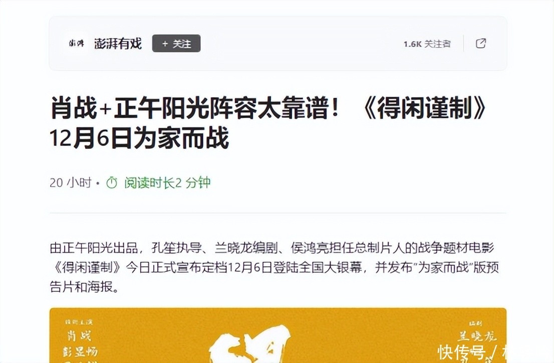 本文内容信息来源:肖战微博、澎湃有戏、上海证券报、北京文艺广播、南方娱乐网